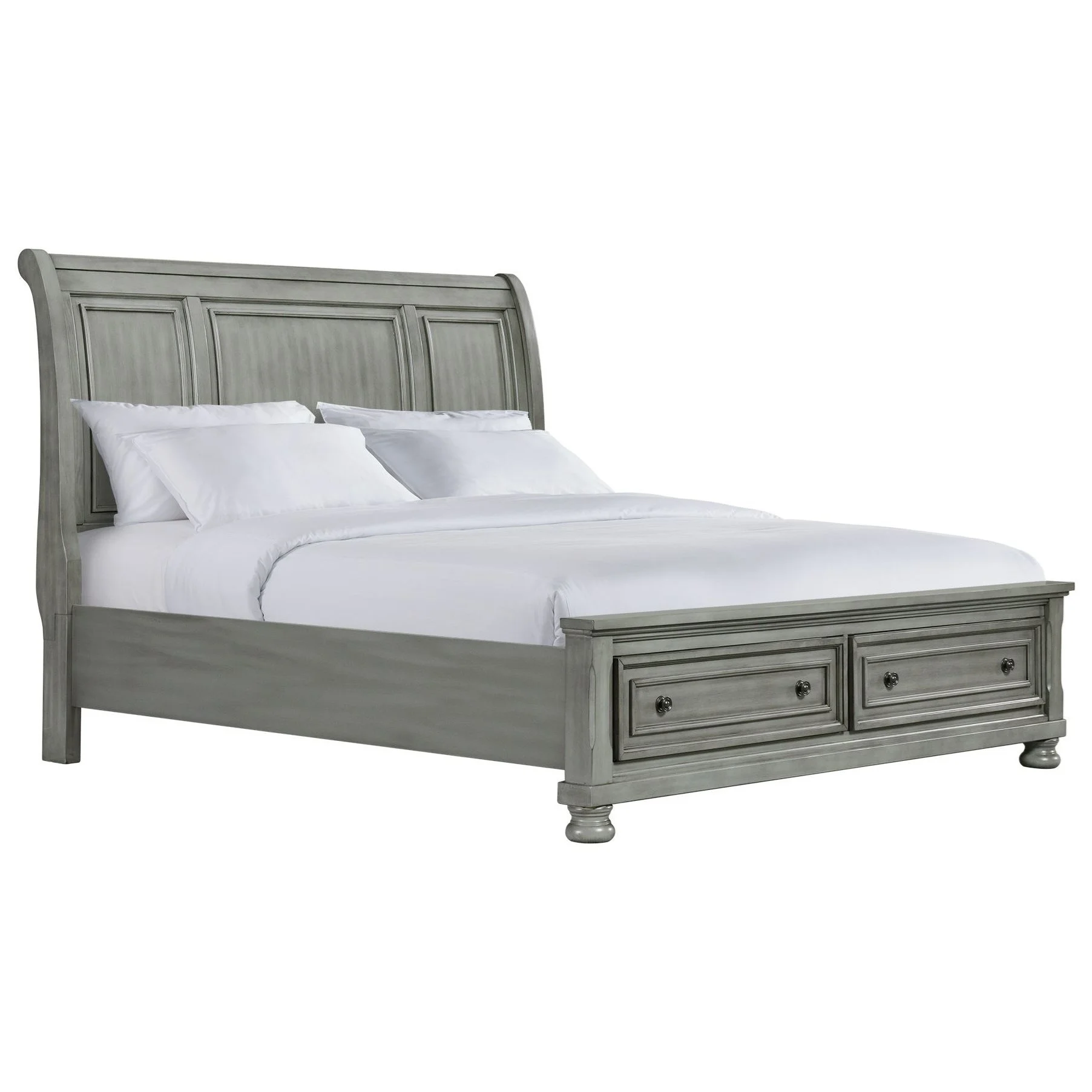 Elements Kingston Grey Transitional King Sleigh Bed With Footboard Storage Royal Furniture Panel Beds